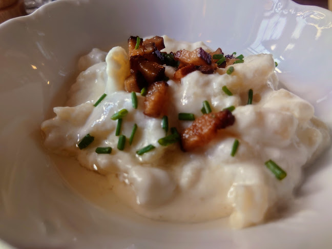 Dobré, ale drahé. Účtuje sa servisný poplatok vo výške 10 %. Porcia jahňacieho stehna (22,9 € + 2,2 € obsluha) bola pomerne malá s dvoma tenkými plátkami zemiakovej štrúdle, ale chuť bola skvelá. Makové rezance a služby boli dobré. Rustikálna atmosféra. Typická turistická reštaurácia.